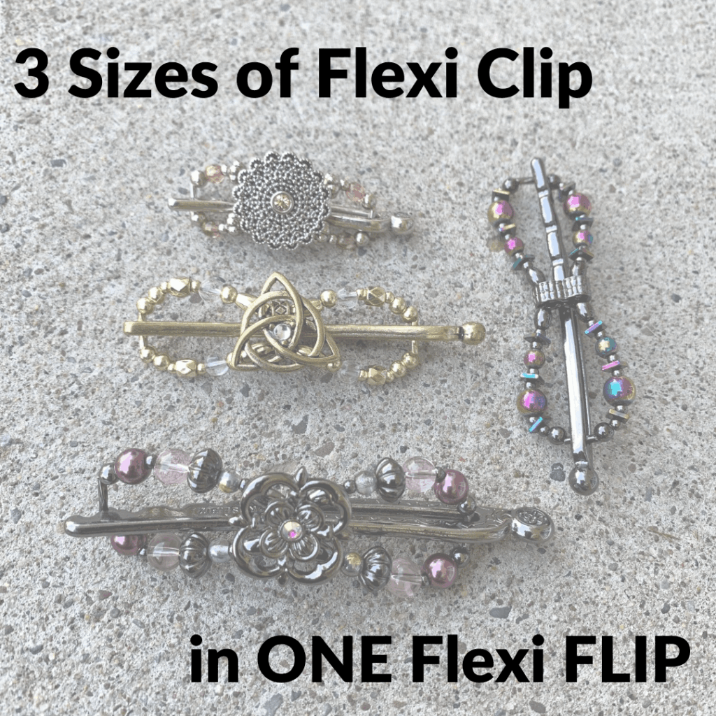 The Flexi Flip is Lilla Rose’s multi-size hair clip. Instead of choosing between seven different sizes, the Flip adjusts to fit different amounts of hair.