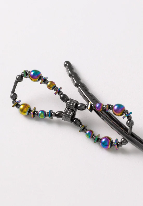 The Flip has a unique hinge design that lets it hold varying amounts of hair. Flip it one way for a ponytail, another way for a half-up, and fully open for an updo.